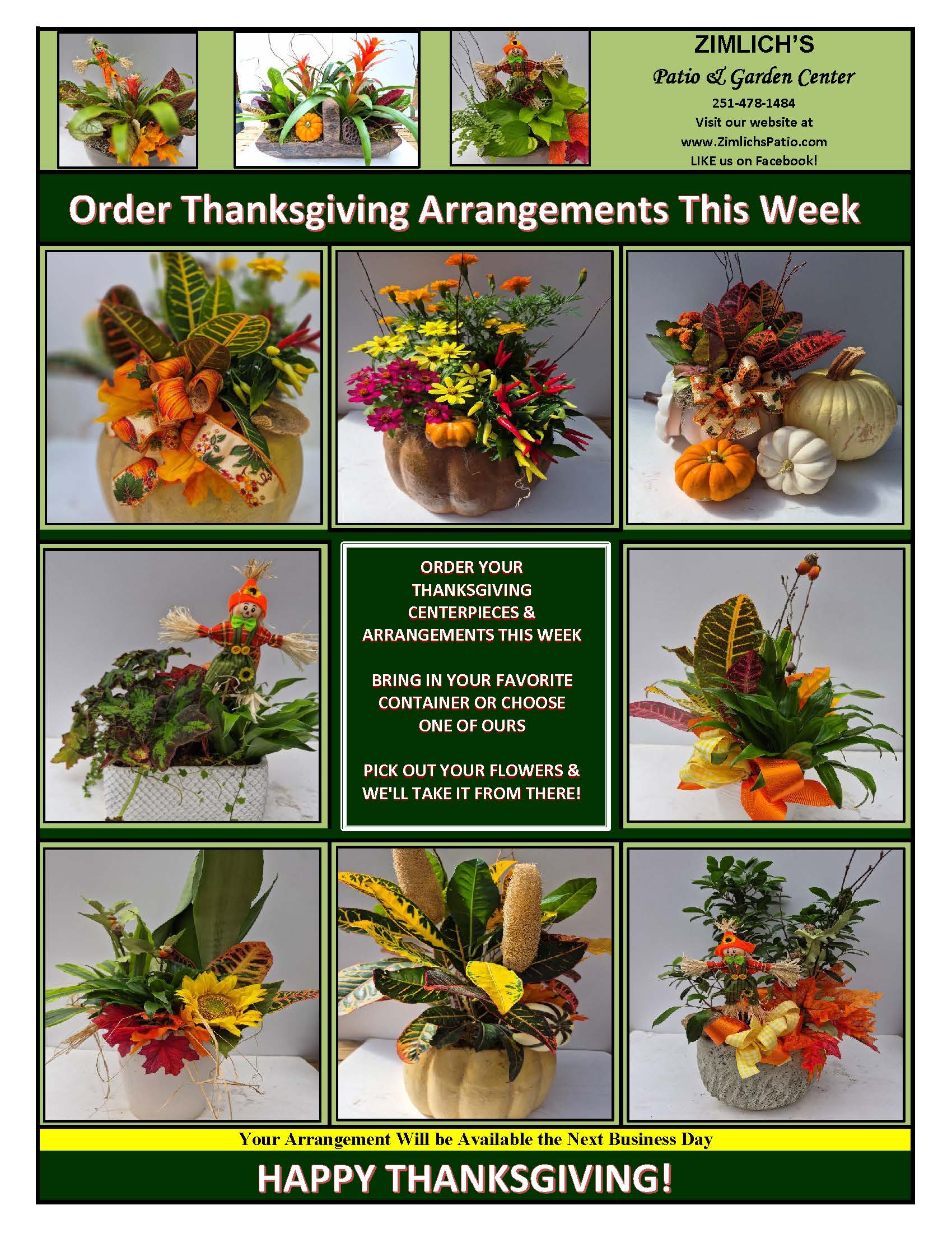 Thanksgiving is just 7 days away and the focal point of the meal is the turkey. Supporting the turkey is a beautiful holiday arrangement or centerpiece. Sherry and Nancy have created numerous ready to go arrangements that we are featuring today. Aren’t they rich, bold and beautiful. If you would prefer a custom arrangement, you can bring in your favorite container or select one of ours. Then choose the plants/flowers that you want and we will do the rest with love. Your Thanksgiving arrangement will be available the next day. Stop by today and order your arrangement. See Sherry and Nancy. Like what you see? Please join us on Facebook for more great arrangements and plants.